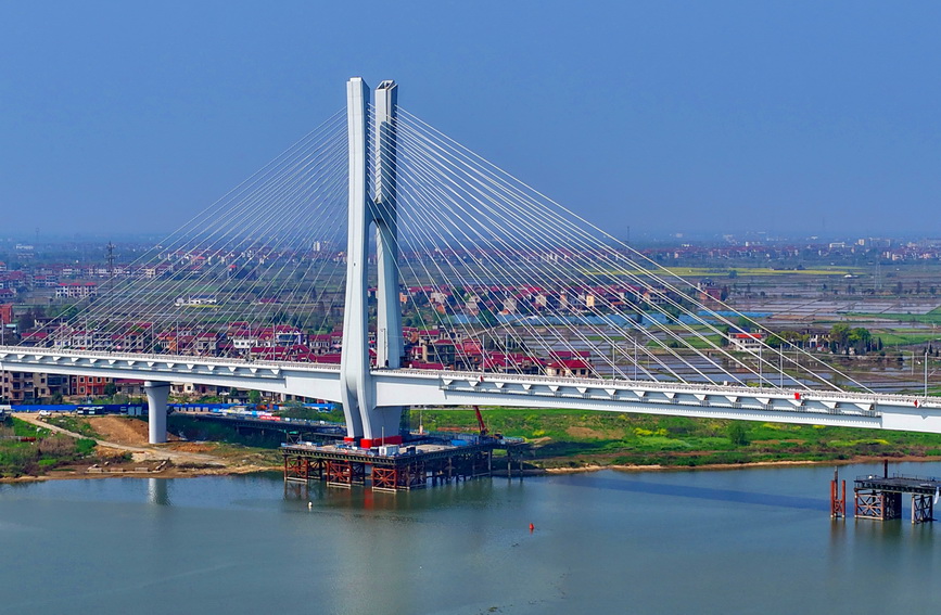 清明假期期间,位于江西省南昌市南昌县蒋巷镇的昌九高铁扬子洲赣江公铁大桥南支主桥项目现场,建设者坚守岗位,有序推进收尾施工,为下一步铺轨奠定基础。该桥是昌九高铁重点控制性工程,由南支、中支、西支三座桥梁组成,其中南支主桥为预应力混凝土不对称部分斜拉桥,H型主塔高108米,全长510米。项目建成后对推动沿线经济