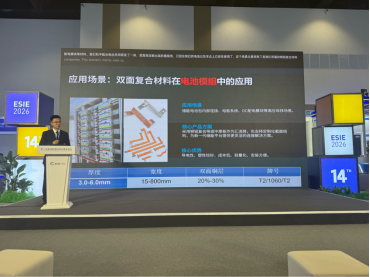 在日前召开的第十四届储能国际峰会暨展览会全球新品发布会上,河南永铜复合新材料科技有限公司副总经理陈志坚现场发布储能专用铜铝复合新材料解决方案,以材料突破破解产业痛点,为新型电力系统建设注入“芯”动能。当前铜资源稀缺、价格大幅波动,传统材料难以同时满足高性能与低成本需求,轻量化、绿色化成为储能产业升级
